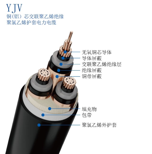 字母含义:YJ:交联聚乙烯绝缘;V:聚氯乙烯护套;L:铝导体(铜导体省略)